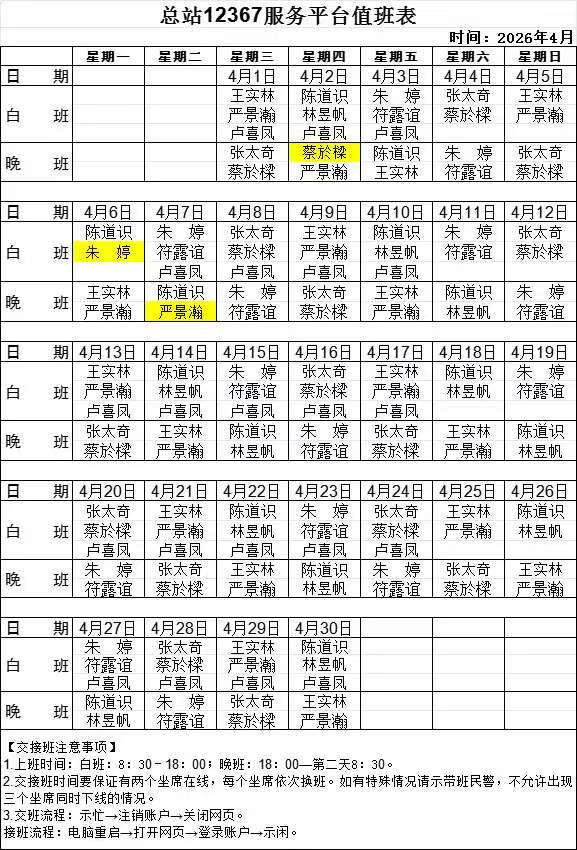26年4月排班